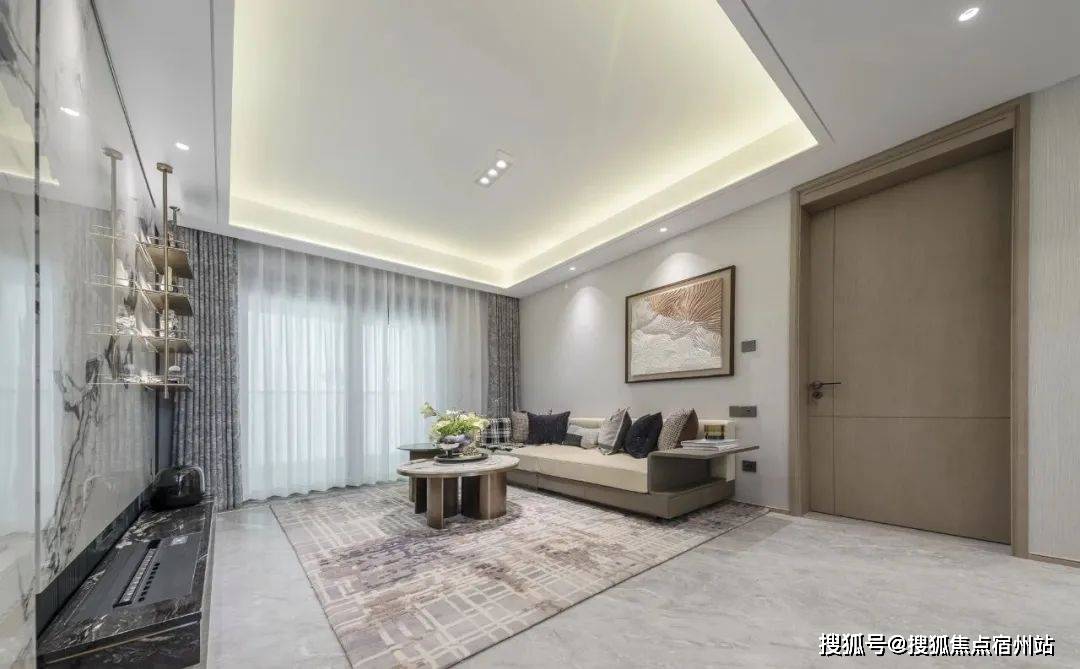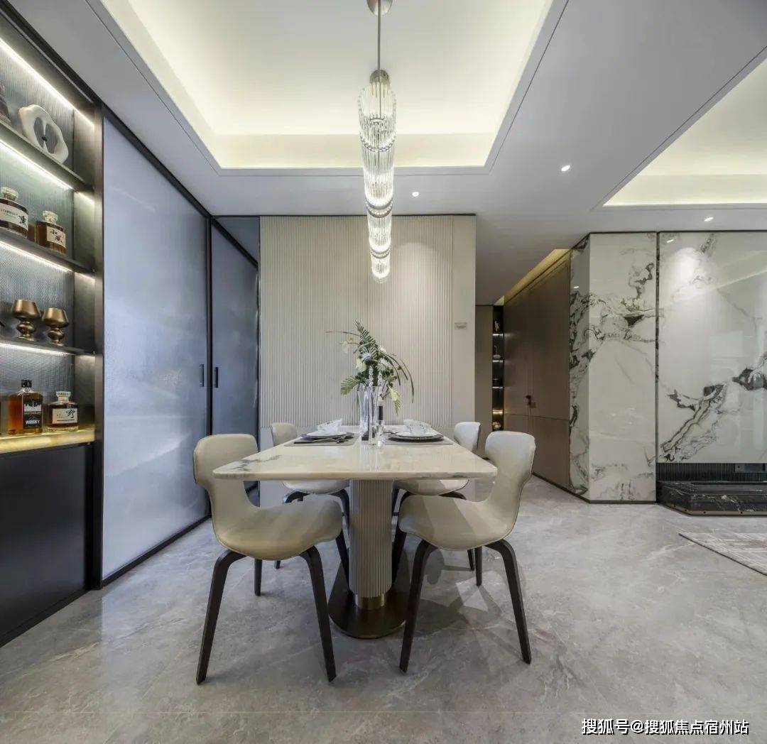 客餐厅一体化,南连同尺度宽景阳台,将生活的奢度打开。金茂定制壁布或墙纸交标结合芬迪白岩板客厅背景墙
